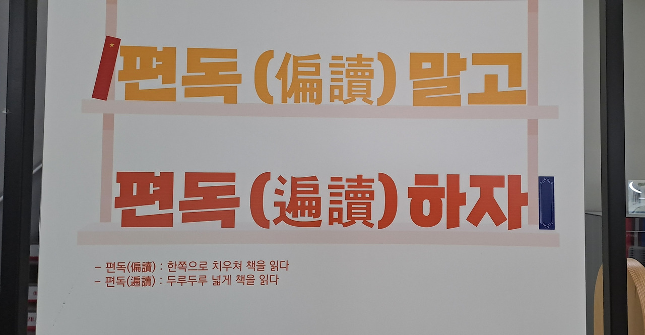 한쪽으로 치우치치 않고 두루두루 넓게 책을 읽어 봅시다.