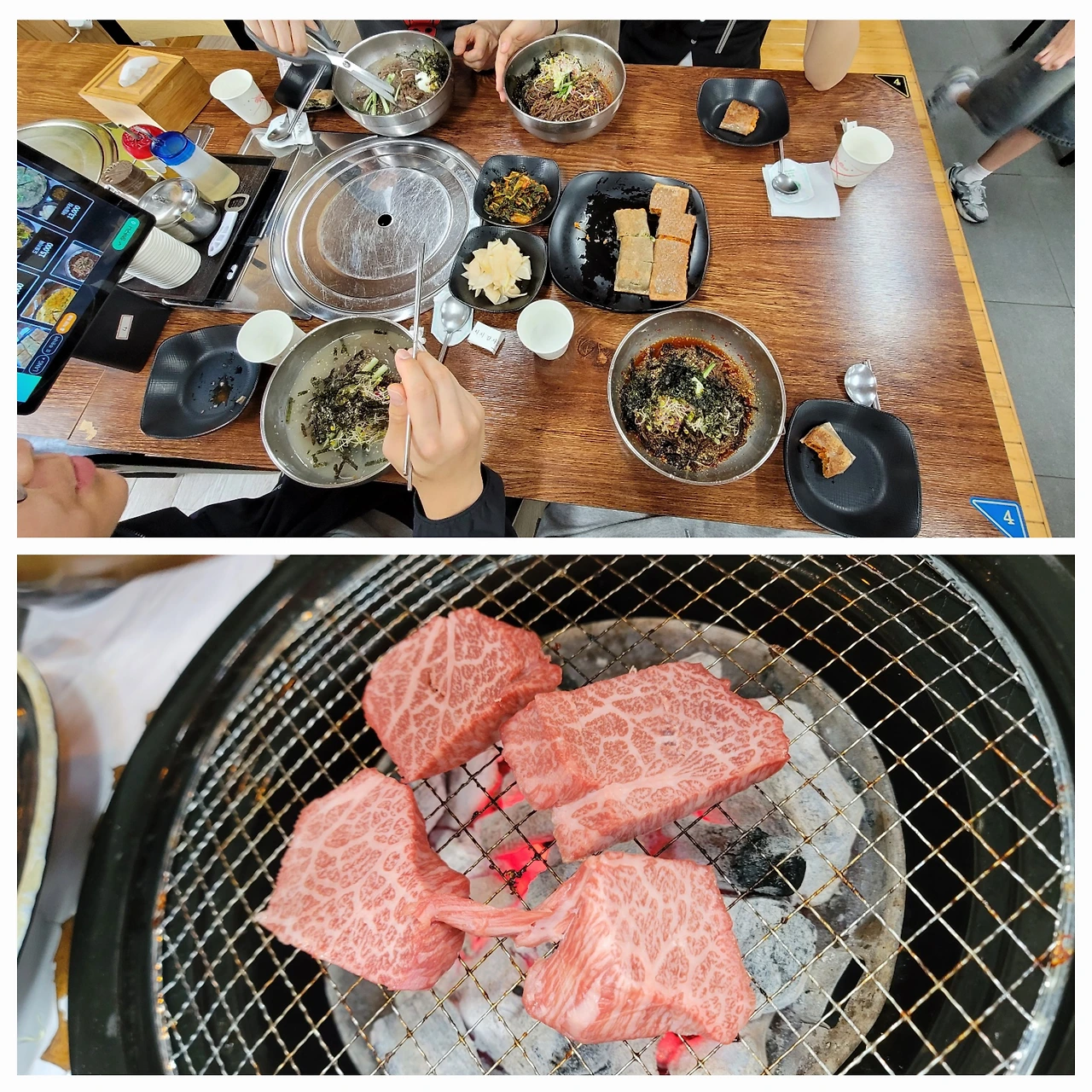 우리는 이날 만 삼천보를 걸었다. 숙소로 돌아와 잠시 쉬며 저녁 메뉴를 골랐다. 평창에 와서는 한우를 꼭 먹어야 한다는 나의 주장에 모두 동의하며 우리는 한우를 먹으러 갔다. 점심도 막국수와 메밀전병으로 맛있게 먹었는데 저녁은 더더욱 맛있었다. 역시 한우라며 우리는 신나게 먹었다. 팩에 붙은 한우 가격을 본 아이들이 경악할 때까지... 한우는 참 비싸다. 그런데 너무 맛있다. 그렇게 우리의 첫날은 알차게 지나갔다.