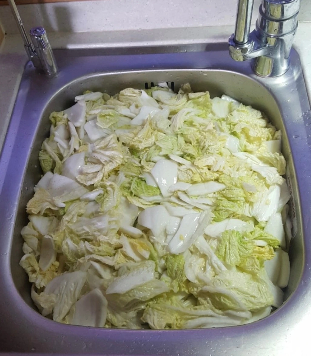 좁은 캠핑카 주방에서 배추 5 포기를 절이고 버무리는 작업은 흡사 전쟁이었다. 허리를 제대로 펴지도 못한 채 좁은 싱크대에 매달려 배추와 씨름하느라 여기저기서 곡소리가 터져 나왔다.