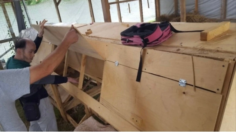 버려진 창고를 뜯어내고 서까래를 올려 번듯한 양계장으로 탈바꿈시키는 공사가 한창이었다. 기술자도 없는 이들이 오직 서로의 어깨를 빌려 지어 올리는 그 투박한 뼈대 위로 재활의 희망이 함께 쌓이고 있었다.