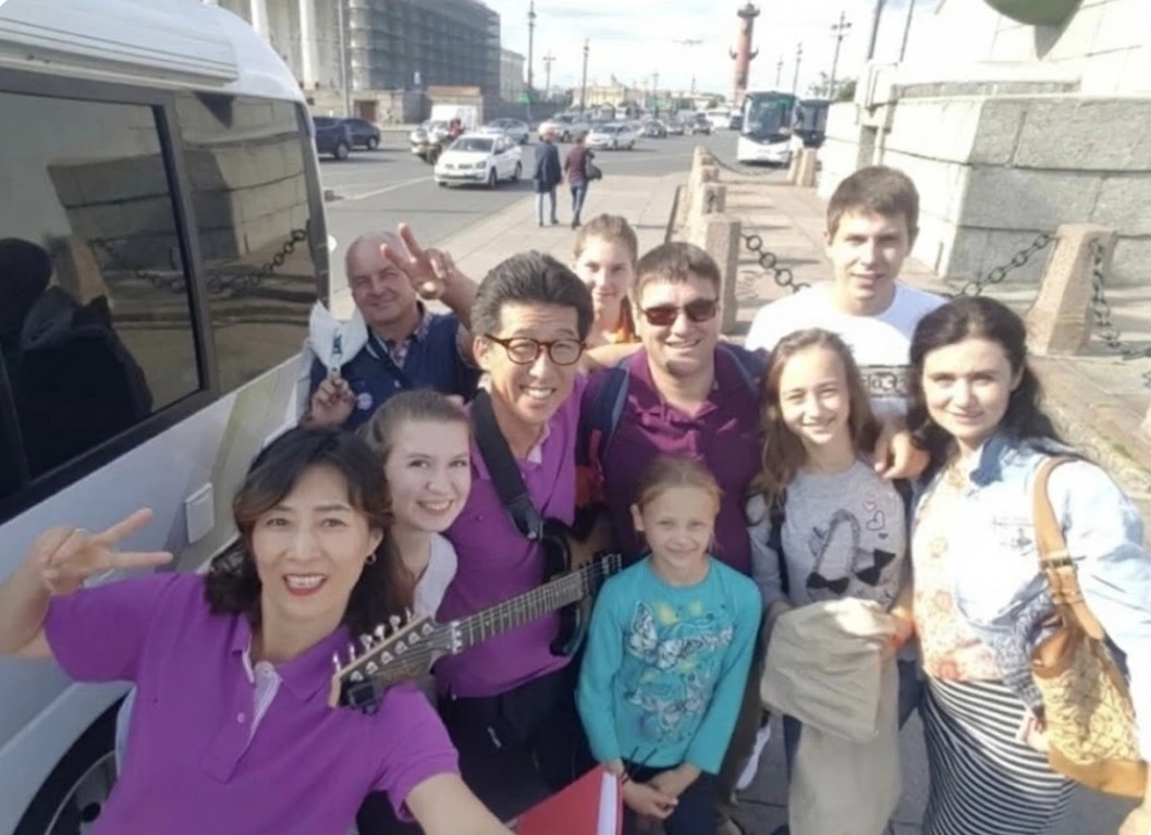 쪙은 목을 가다듬었고, 나는 기타 줄을 튕기며 강바람에 음을 실었다. 한쪽 스피커가 제대로 나오지 않아 소리는 조금 거칠고 투박했지만, 우리의 연주는 네바 강변의 맑은 공기를 타고 멀리 퍼져나갔다.