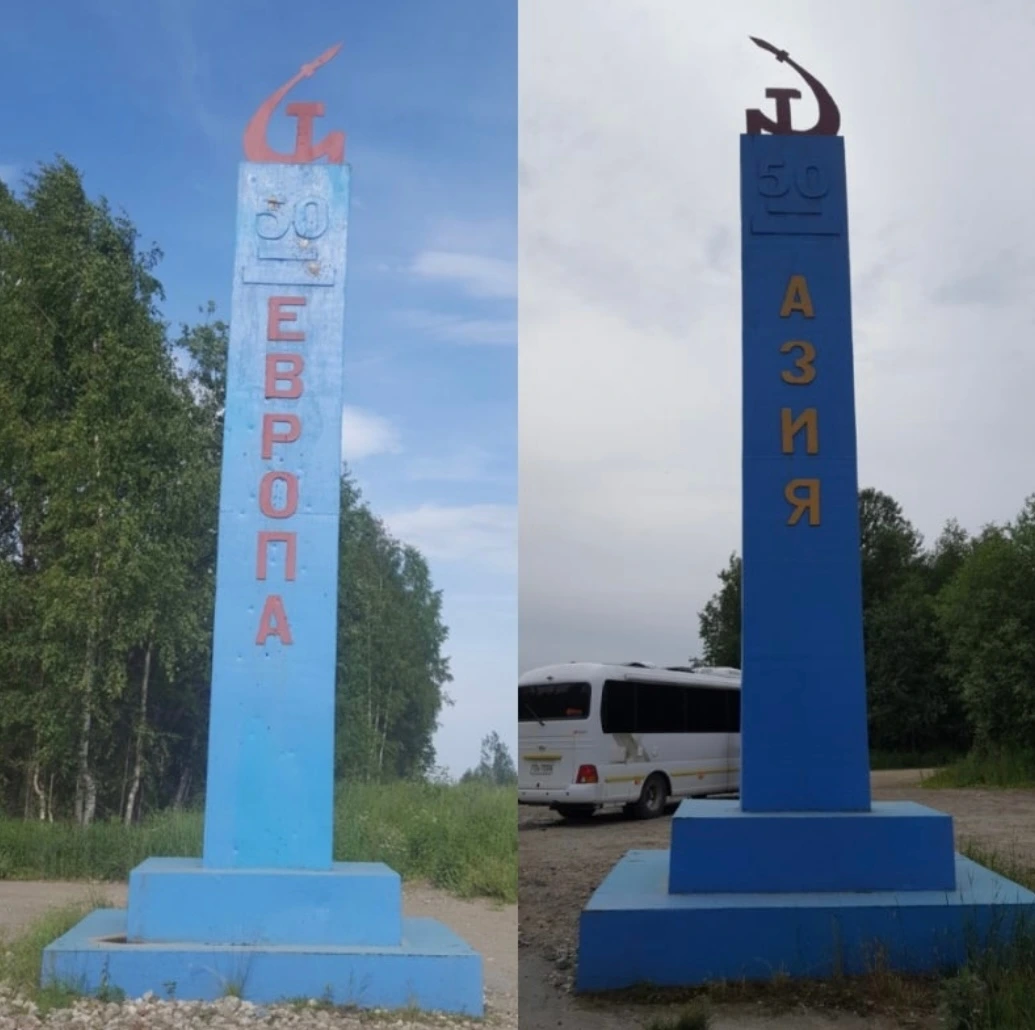 하지만 이 모든 고생은 한순간의 감동을 위한 빌드업이었나 보다. 도시 외곽 숲길에 서 있는 '아시아-유럽 경계비'. 우리는 비석 앞에 그어진 붉은 선 앞에 섰다. 흙길을 구르고, 사기를 당하며 달려온 길.