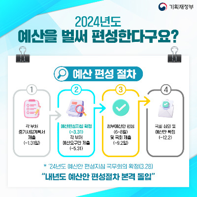 보통 지원정책은 창업을 막론하고 시즌이 존재한다. 보통 2월~5월까지 지원정책이 쏟아져 나오는 시기인데, 국가부처의 예산 운영 일정을 보면 그럴 수밖에 없다. 대략적으로 행정기관의 운영일정은 아래와 같은 방식이다.
