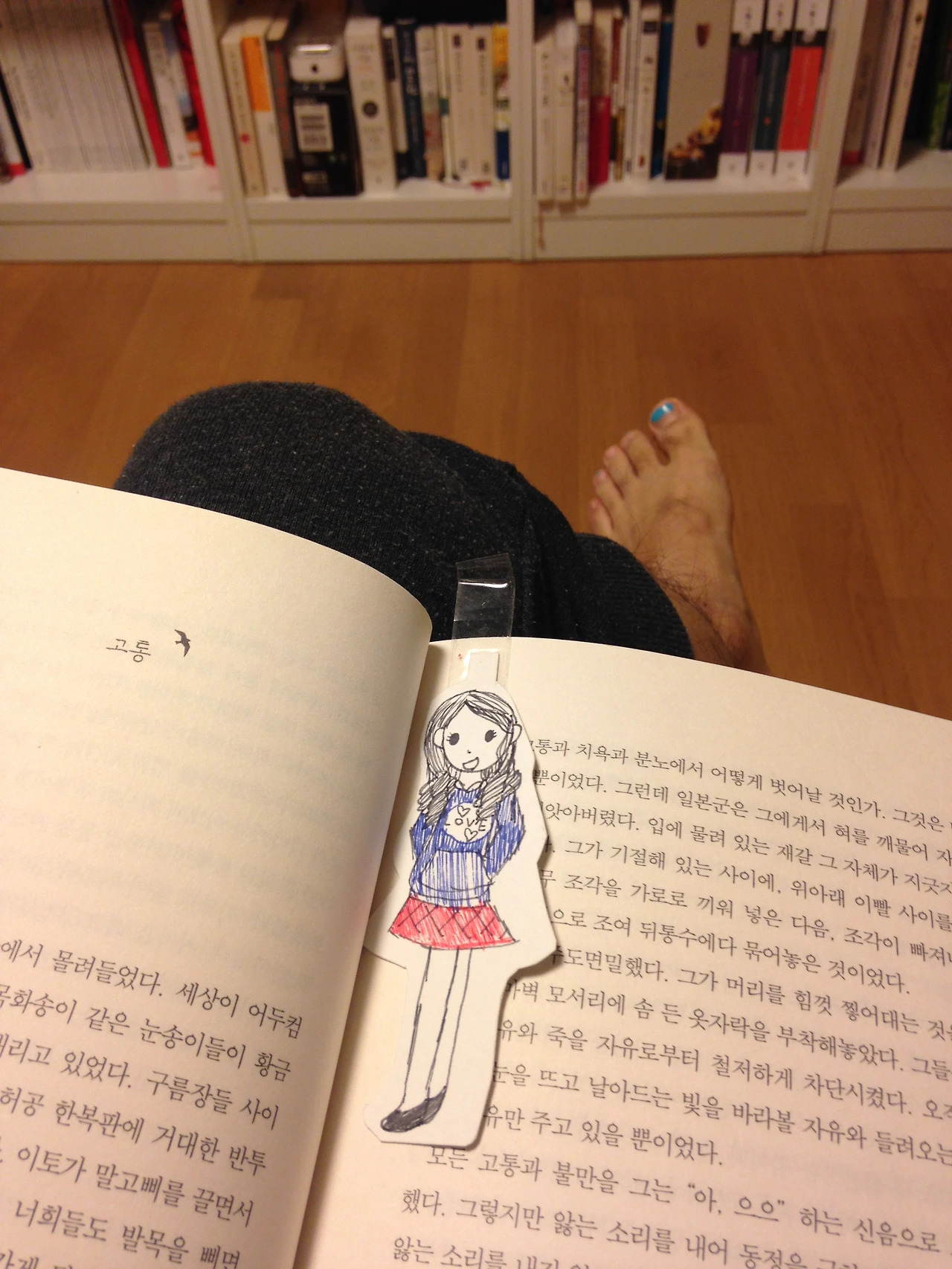 둘, 아내에게 책을 읽어 준다.