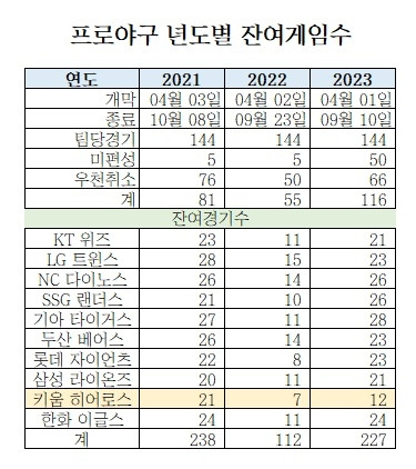 3년 간 프로야구 잔여 일정, 보도 종합