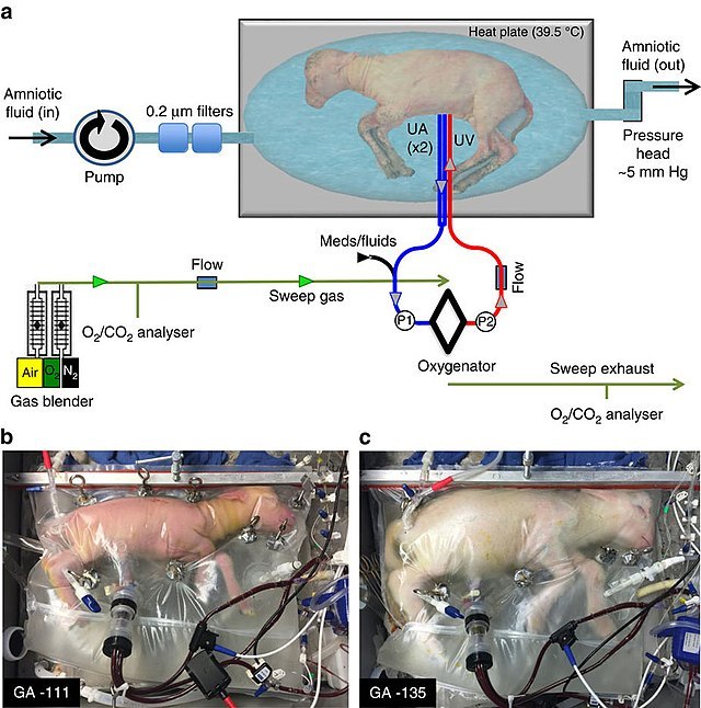 이미 2017년 미국 필라델피아 아동병원(CHOP) 태아연구센터가 인공자궁에서 초미숙 상태의 양을 키우는 데 성공했다. 당시 연구진은 어미 양의 자궁에 있던 120~125일 된 초미숙 양(인간의 임신 23~24주 해당) 8마리를 제왕절개로 꺼낸 뒤 비닐백 형태의 바이오백(biobag)에 넣어 최대 4주간 건강하게 성장시킨 것이다.