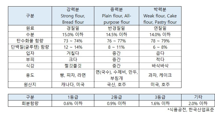 밀가루의 구분