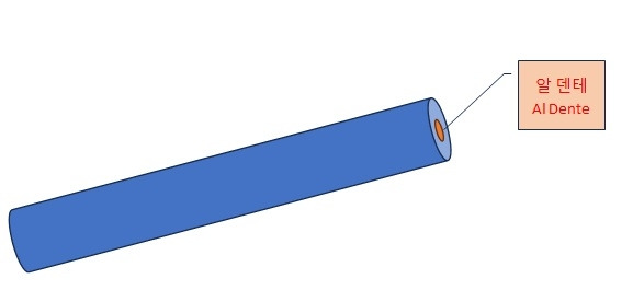 스파게티면을 삶을 때는 면을 잘라봐서 면 중심부에 바늘 끝 정도의 심지(안 익은 부분)가 남아있을 때까지만 삶아야 맛있다고 한다. 이 상태를 ‘알 덴테’(Al Dente)라고 한다. ‘덴테(dente)’란 이탈리아어로 ‘치아(tooth)’를 뜻한다. 일부 나폴리 지방에서는 완전히 익힌 것보다 약간 덜 삶은 것을 별미로 꼽는데 이런 연유에서 유래된 단어이다.