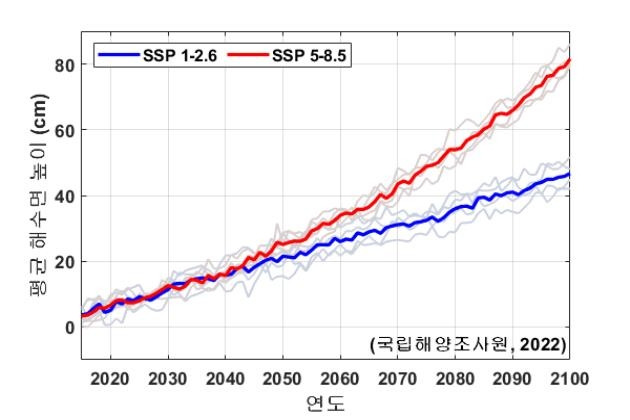시나리오별 2가지의 우리나라 주변의 해수면 상승 전망