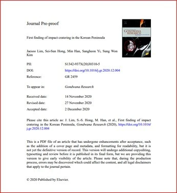 그동안 현장조사 이야기가 솔솔 올라오던 이 분지에 대한 뉴스가 나왔다. 2020년 12월 14일 한국지질자원연구원 국토지질연구본부 지질연구센터(센터장 김성원) 연구팀은 경남 합천 ‘적중-초계분지’를 조사한 결과 5만 년 전 발생했던 ‘한반도 최초의 운석 충돌 구’였다고 밝혔다. 연구 결과는 국제학술지 ‘곤드와나 리서치’(Gondwana Research, http://bm.cugb.edu.cn/iagr/) 온라인판에 지난 8일 게재됐다(논문제목: 한반도 최초 운석충돌구 발견, First finding of impact cratering in the Korean Peninsula).