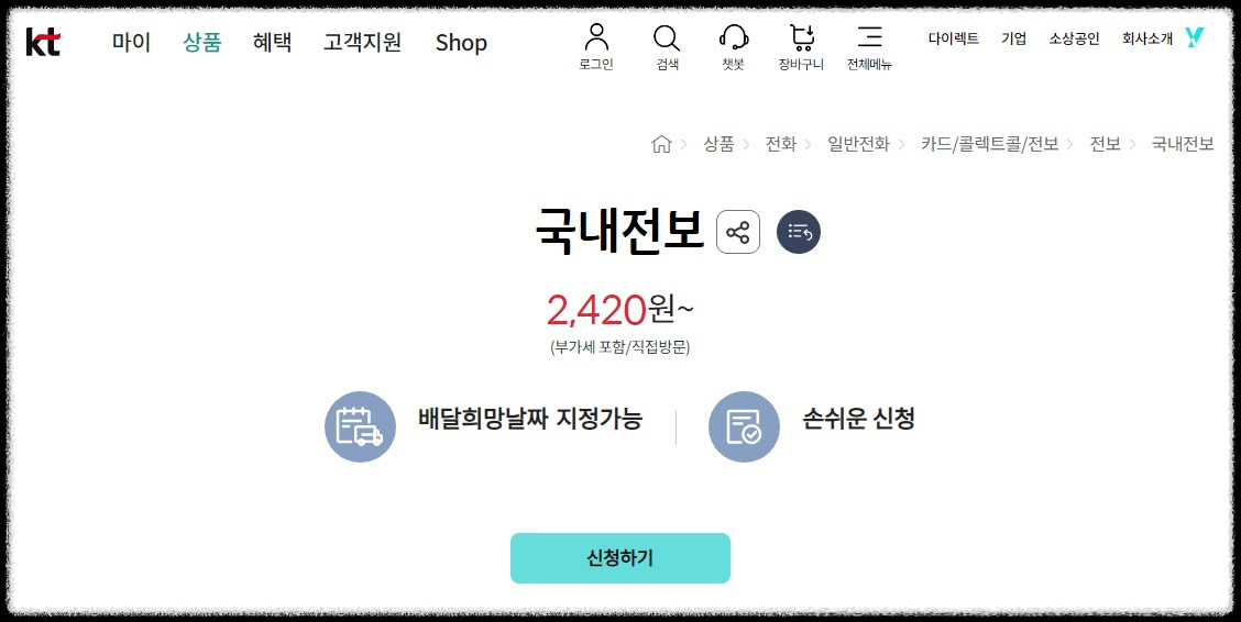 전보 신청, 출처: KT 홈페이지
