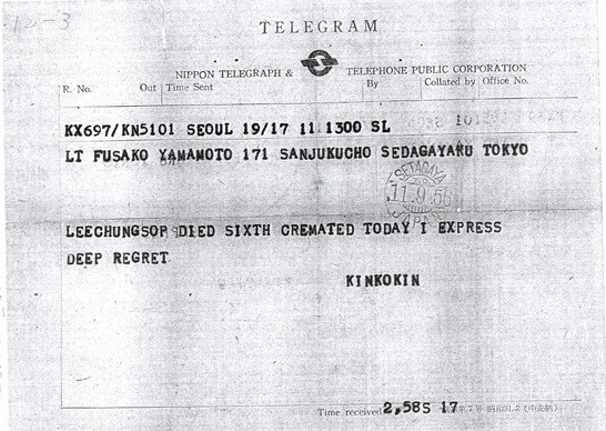 이중섭의 사망, 화장 소식을 마사코에게 알린 김광균의 전보, 출처: 조선일보