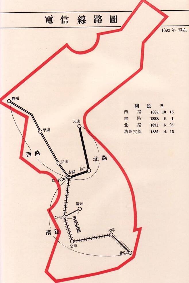 일본은 청나라와 대결 구조 속에서 좁아져 가는 입지를 높이는 한편 1884년에 완성한 부산-일본을 잇는 해저전선에 연결할 목적으로 1888년 남로전신선(한성-부산)을 건설했다. 또 남로전신선 가설의 기술적 경험을 바탕으로 조선 정부가 독자적인 의지로 1891년 북로전신선(한성-원산)을 가설함으로써 조선전신망의 기본적인 틀을 완성하게 되었다.