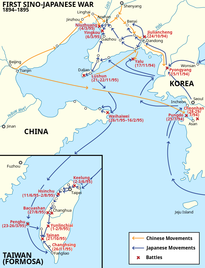 청일전쟁 지도(1894~1895), source: wikimedia commons , public domain