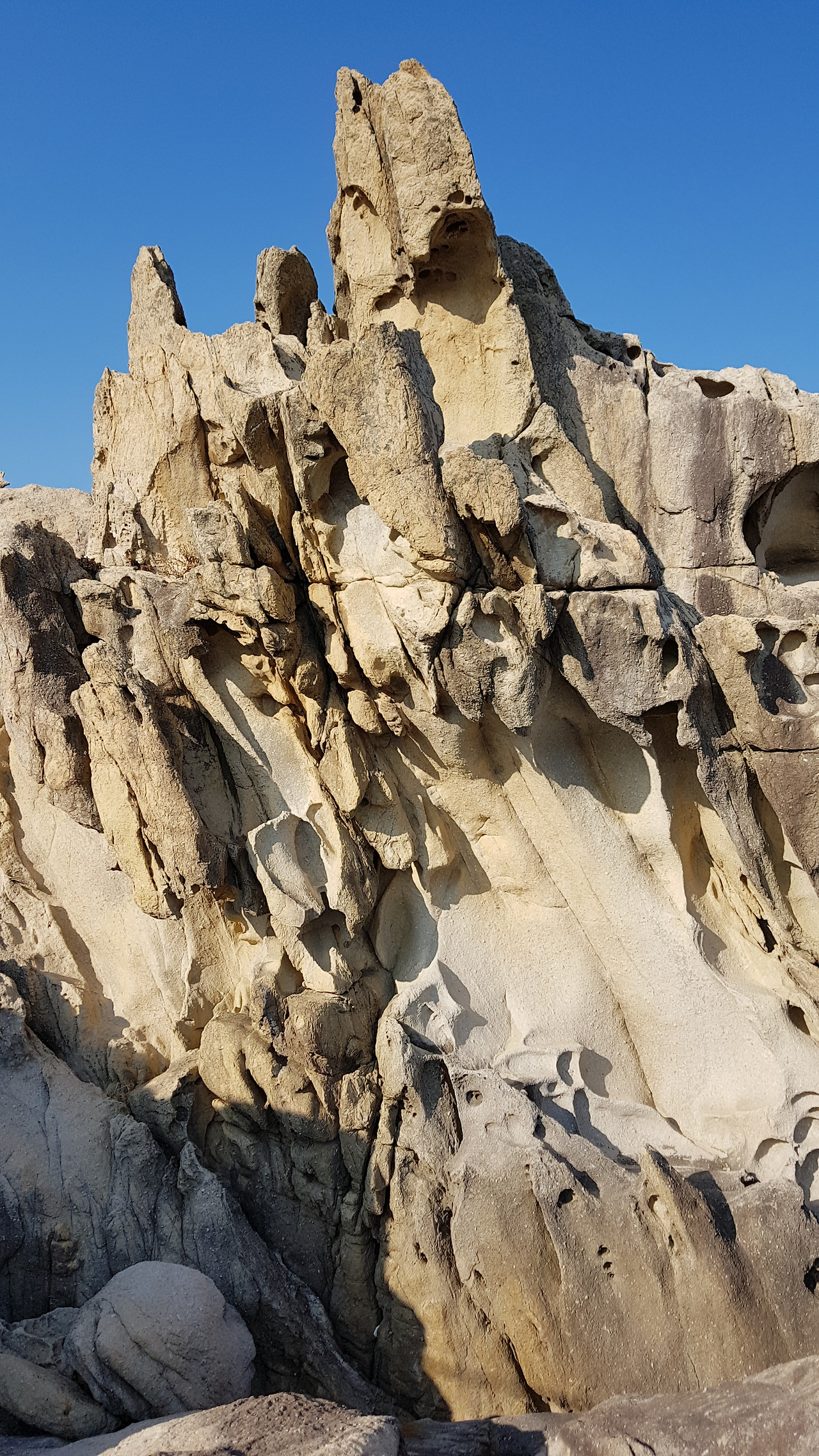 표지사진처럼 마치 해골 같은 모양에 곳곳에 구멍이 뚫려있다. 암석은 거친 조립질 암석이다. 파도가 새겨놓은 구멍구멍에는 관광객들이 던져 넣은데 성공한 소원을 빌었던 동전이 가득하다. 소원기원에 성공하지 못한 동전은 아마 바위 주변에 있을 것이다. 그때 관광객은 이미 기억이 나지 않겠지만 그래도 상관없다. 즐거운 여행이었으니까.