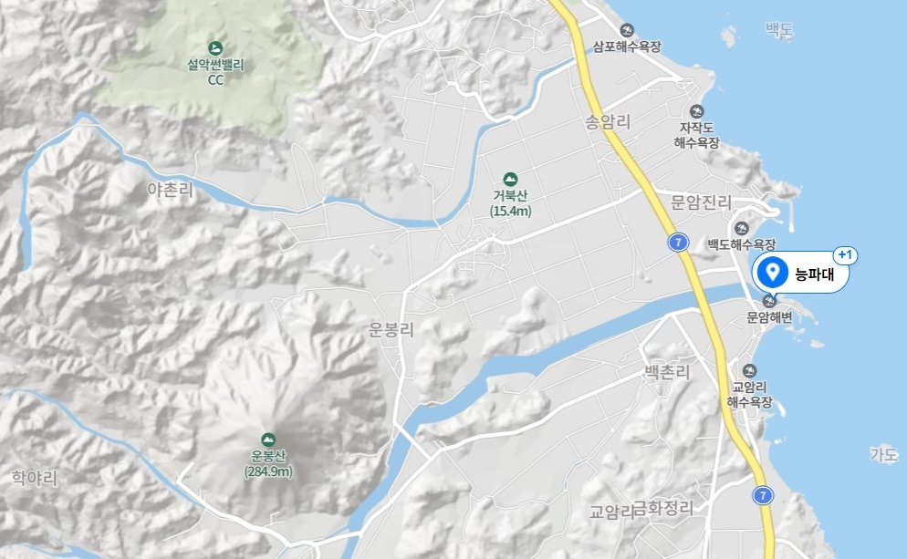 능파대는 BTS가 지난 2021년에 화보 및 영상인 '2021 윈터 패키지'에 실려서 팬들의 방문이 엄청 늘어났다. 마치 없었던 능파대가 새로 생긴 것처럼 말이다. 여기서 북쪽으로 4km쯤 가면 송지호 해변이 나오는데, 여기 있는 서낭바위도 함께 실렸다. 서낭바위는 다음 기회에 소개한다. 두 장소 모두 국가지질공원으로 지정되어 시설도 많이 개선되었다.