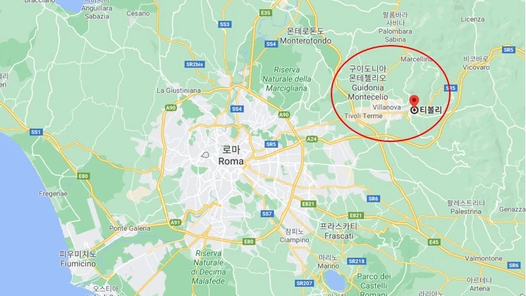 티볼리(Tivoli)와 구이도니아몬테첼리오(Guidonia Montecelio) 위치, 출처 : Google map