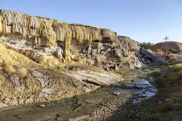 미국 와이오밍주 터모폴리스에 있는 Hot Spring State Park의 트래버틴 테라스Acroterion CC BY-SA 4.0 (Wikimedia Commons)