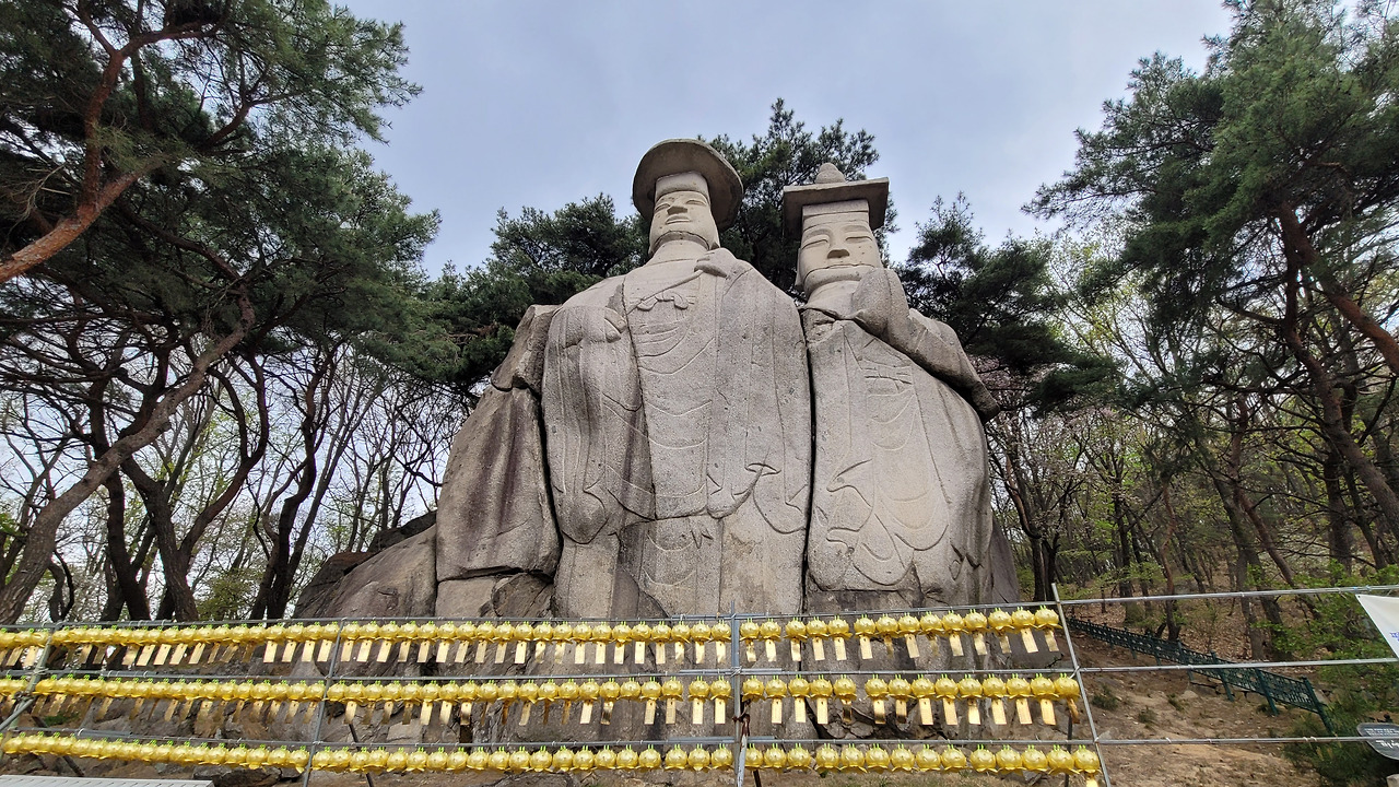 그런데 파주 용미리에 가면 갑자기 넓지 않은 화강암지역인 장지산이 나오는데, 바로 여기에 파주 용미리 마애이불입상이 있다.
