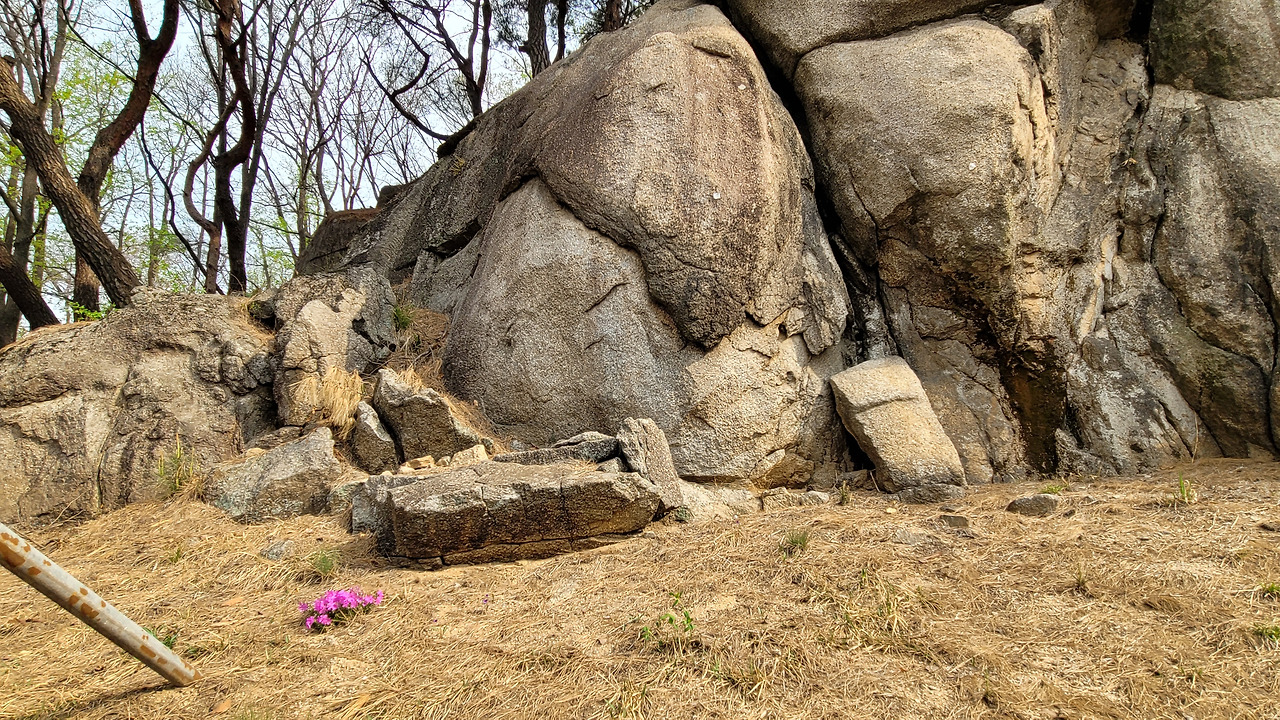 경주의 남산에 가면 이런 모습이 잘 보이는데, 마애불이나 석불이 있는 모셔져 있는 주변 산기슭은 살펴보면, 위 사진처럼 큼직한 바위의 낙석이 떨어져 있는 것을 볼 수 있다. 그래서 나는 이런 낙석이 있는 곳에는 적당한 위치에 마애불이 있을지도 모른다는 생각을 자연스럽게 하게 된다. 아직 발견되지 못한 부처님이 나를 기다리고 있을 것이란 기대를 해본다.