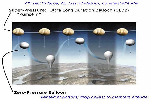 Flight profile of Super-Pressure Balloons versus Zero-Pressure Balloons. source: NASA/Wallops BPO