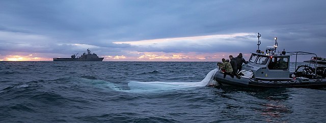 미해군 하퍼스페리급 상륙함 Carter Hall의 중국 정찰 풍선 회수, 2023.2.5, Source: wikimedia commons by 미 해군
