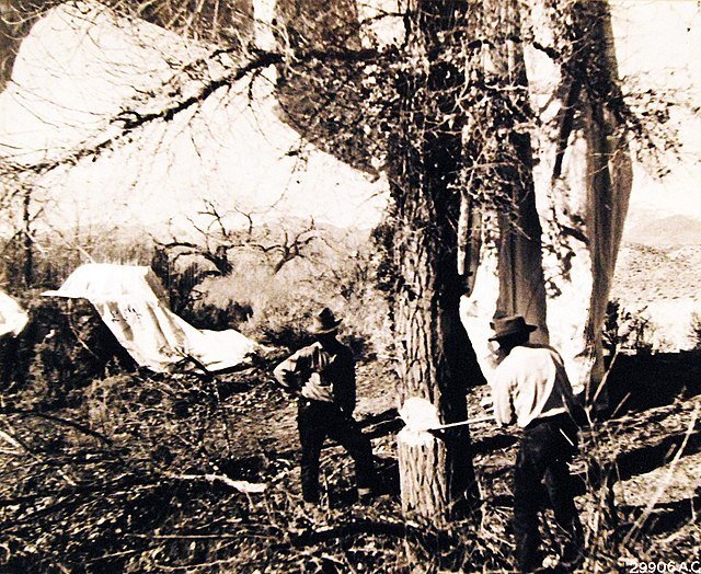 1945년 3월 29일 네바다 중 닉슨 근처에서 나무에 걸려 발견된 불발된 일본 풍선 폭탄, Source: wiki. com. by 미해군박물관, public domain
