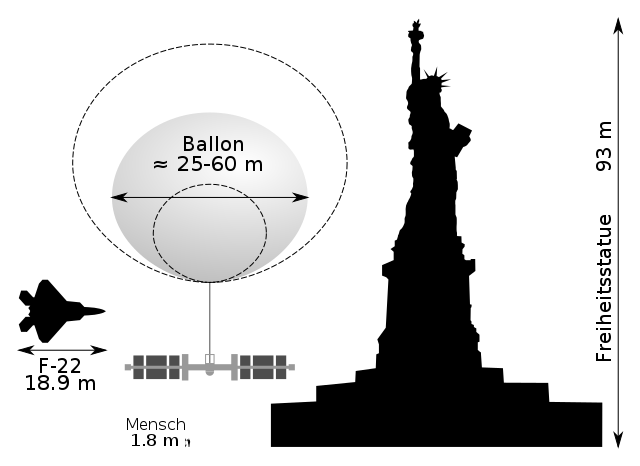중국의 정찰용 풍선의 크기와 비교물체, Source: wikimedia commons by