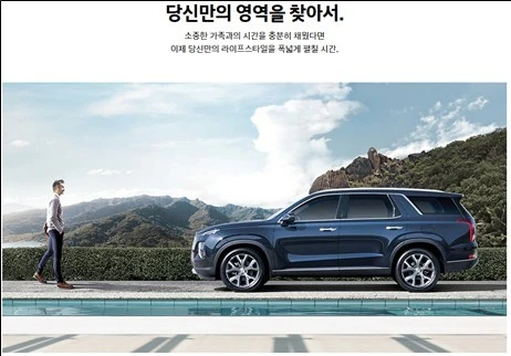 이 지역은 시원한 태평양 바닷바람과 일몰로 유명한데 하이킹, 자전거 타기 및 고급 골프 코스가 있어 여유로운 동네라고 합니다. 구글 지도를 보면 베벌리 힐스에서 남서쪽으로 10km 정도 떨어져 있습니다. 보도에 따르면 "패시픽 팰리세이드 지역의 편안하고 여유 있는 분위기가 자동차 이미지와 일치하다 보니, 이곳 지명을 차명에 적용하게 되었다"라고 현대자동차 관계자가 말했다고 합니다. 그리고 광고에는 이런 그림도 나왔습니다.
