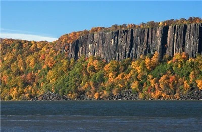다시 미국 이야기입니다. 뉴욕 섬에서 뉴저지 쪽으로 조지 워싱턴 다리를 건너자마자 우회전하여 고속도로를 따라 허드슨강 상류 쪽으로 15km 정도 가면 팰리세이드 인터스테이트 공원이 나옵니다. 맨해튼의 서쪽이지요. 이쪽은 지대가 약간 높아 100m 정도의 단구대(계단형 절벽)를 형성합니다. 허드슨 강에서 보면 절벽이 아주 멋있습니다.