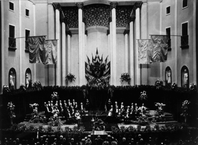 1938년 노벨상 수상식, 엔리코 페르미(화학), 펄 벅(문학) 수상. Source: wikimedia commons by Karl Sandels, public domain