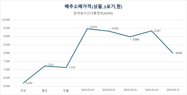 보도에 따르면 일부 전통시장에서 1 포기에 2만 원이 넘는 판매가격을 붙였다고 난리다. 배추가 아니라 금추라고도 한다. 솔직히 이번 여름을 지나면서 제대로 큰 야채류를 찾기는 힘들다. 가뭄도 심해 물이 많이 필요한 배추에게도 최악의 계절이었다. 다행히 배추는 종류를 바꿔가며 연중 내내 재배가 가능하다. 하지만 제철이 가을~겨울이고 김장이라는 큰 수요기간이 있어 문제다. 보통 김장배추는 고랭지배추가 담당하는데, 올해는 고랭지의 기온이 높아 작황이 좋지 않은 게 문제다. 사실 농업이 흉년과 풍년을 오가는 도박성이 짙어지면서 자극적인 보도가 자주 등장하는것도 큰 문제다.