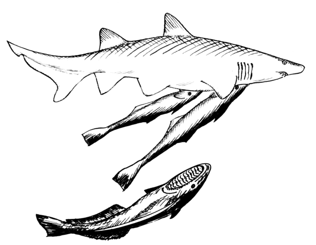 우리가 동물의 왕국 같은 자연다큐멘터리에서 자주 보는 빨판상어가 대표적인 예이다. 빨판상어는 경골어류 빨판상어과(Echeneidae)에 속하는 어류로 이름은 상어지만 연골어류에 속하는 상어와는 전혀 다른 어종이다. 우리가 자연사 박물관에 가면 상어이빨만이 전시된 것을 볼 수 있는데, 이는 상어가 연골어류라서 뼈가 남아 있지 않기 때문이다. 하지만 빨판상어는 뼈가 있다.