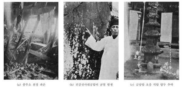 1936년 지리산 지진시 쌍계사의 주요 피해 현황, 출처: 선창국 등, 2008