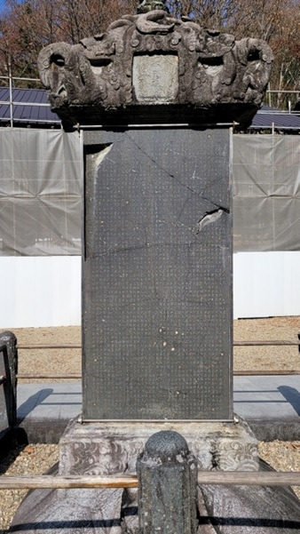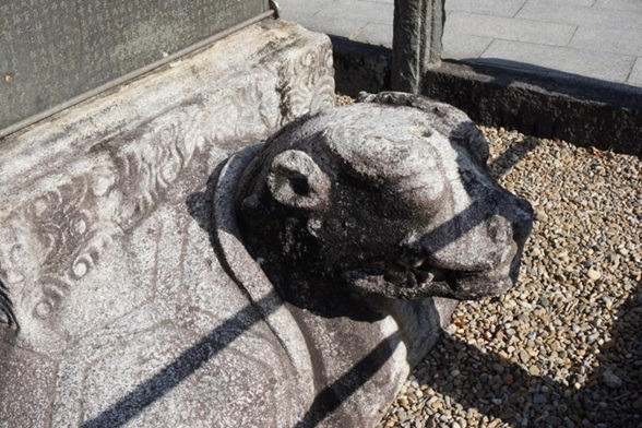 국사편찬위원회의 한국사데이터베이스에는 이수와 귀부는 화강암이고 비신을 백대리석이라고 되어 있는데 무슨 말인지 모르겠다. 실재로 비신은 대리석은 아니고 세일인 듯하다. 아무런 근거 없이 엉터리 정보를 올려 놓지 말고 차라리 빈칸으로 하면 좋지 않을까 싶다. 눈에 띄는 것은 울타리를 이루는 돌기둥 8개인데 암석의 색이 귀부와 다르고 입자의 크기도 상당히 크다. 비석 자체보다 오히려 품격과 세월의 흐름을 잘 나타내고 있다. 아마도 반려암인 듯한데 이 지역에서 산출되지 않는 암석이다. 어떤 이유에서 인지 나중에 타지역의 암석을 다듬어 세운 것으로 보인다.