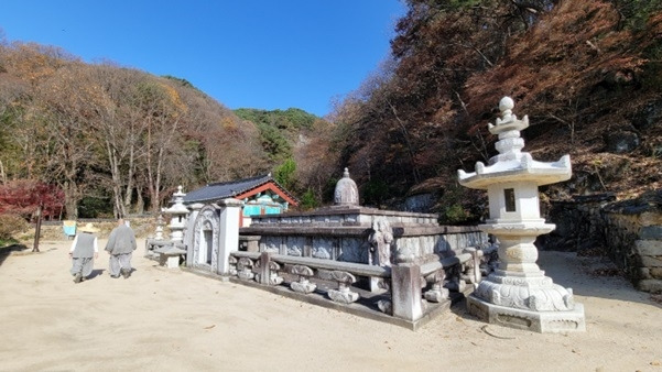 금강계단을 돌면서 이야기하는 두 분의 스님은 무슨 이야기를 하는지 궁금하다. 쌍계사는 최치원의 사산비명을 볼 수 있는 곳으로 우리나라 최초의 차 시배지가 계곡 아래에 있고 벚꽃 길도 유명하다. 여기서 동쪽으로 산을 넘어가면 4.5km 거리에 삼성궁이 있다.