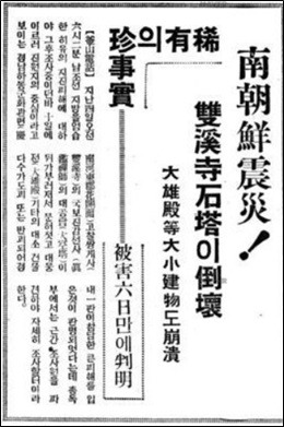 쌍계사 지진의 피해를 보도한 1936년 7월 11일자 동아일보 기사