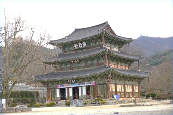 금산사 미륵전, 뒤편으로 모악산 정상에 군기지가 보인다