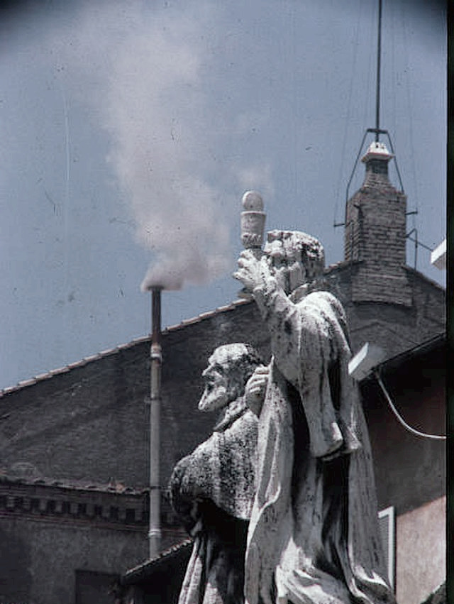 투표를 마치면 시스티나 성당의 굴뚝으로 선출 안되면 검은색 연기가, 선출되면 흰연기가 피어오른다.