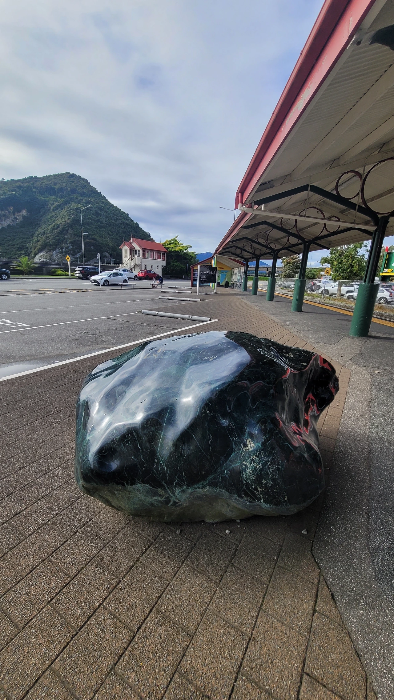 그레이 마우스 역의 한쪽에는 커다란 바위가 떡 하니 놓여있다. 그 모양이 신기한데 변성암석인 옥의 원석이다. 잘 연마된 표면이 매우 매끄럽다. 예로부터 뉴질랜드 남섬은 옥(jade)으로 유명한데, 마오리말로 포우나무(pounamu)로 알려진 옥은 마오리족에게 중요한 문화적 가치를 지니고 있으며, 장식품이나 장신구 등으로 가공되고 있다. 주로 웨스트랜드 지방에서 많이 나오는데 색상은 보통 녹색이고 회색, 갈색 등 다양한 색을 띤다. 옥세공의 중심지인 호키티가에 가면 이를 파는 상점들이 즐비하다. 단 요즘은 중국 수입 제품도 있다고 하니 지나치게 싼 것은 피하는 게 좋다.