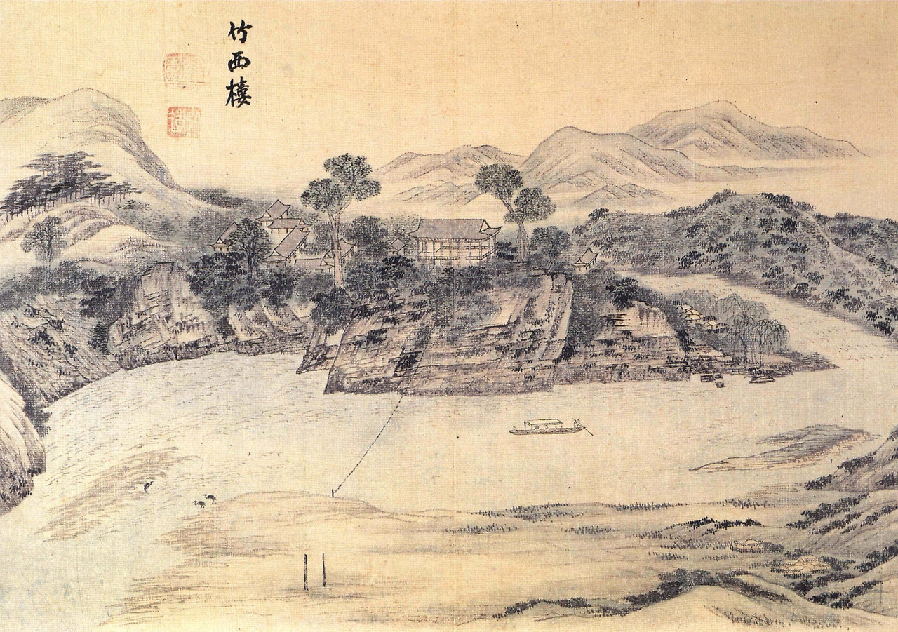관동팔경 중의 제1경인 죽서루는 예부터 여러 화가의 그림 소재가 되었다. 진경산수가 자리 잡은 18세기의 그림이다. 위쪽 그림은 겸재 정선의 관동명승첩(1738년)에 실린 그림이고, 아래쪽 그림은 단원 김홍도의 금강사군첩 (1788년, 정조 12)에 실린 그림이다.