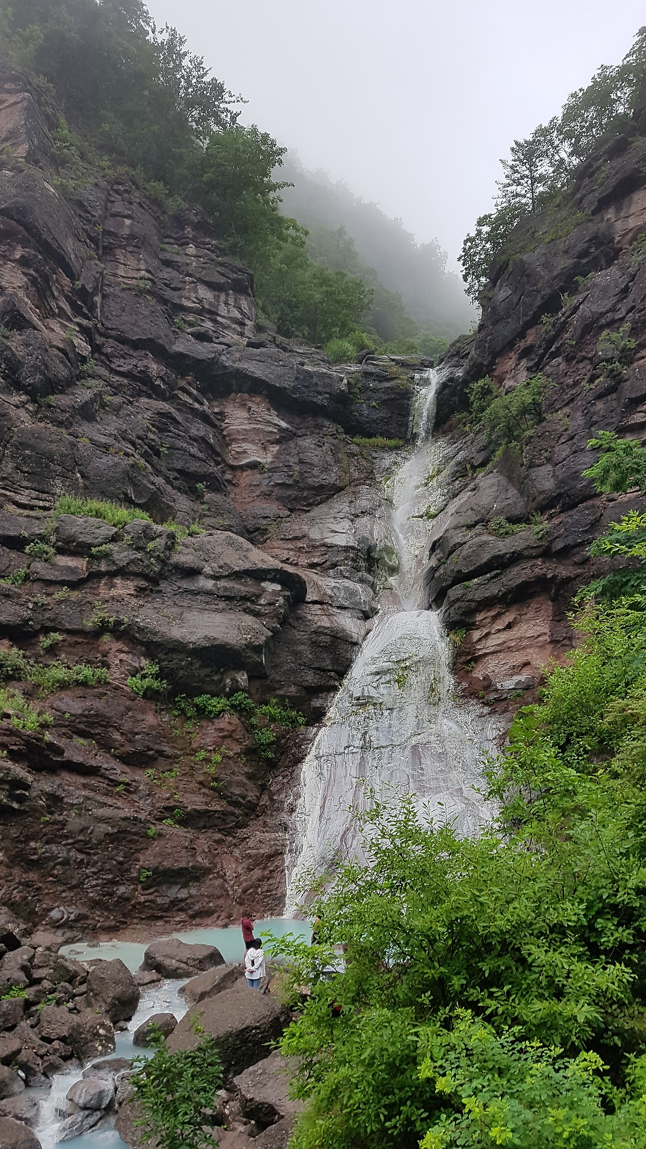폭포 주변에 떨어진 암석은 주로 굵은 자갈로 된 역암이 눈에 띄고, 모래로 이루어진 사암, 진흙으로 굳은 이암 등도 흩어져 있다. 해발 700m 안팎의 고산지대에 위치하고 있어 안개나 구름이 끼는 날이 많으며 이때 경치가 더욱 아름답고 신비롭기까지 하다. 다만 주차장에서 내려가기, 폭포 주변 다가서기에는 조금 공을 들여야 한다.
