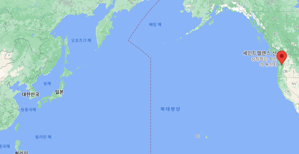 세인트 헬렌스 화산의 위치, 출처: 구글지도