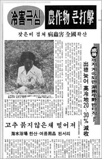 냉해피해 보도기사 동아일보 1980년 8월 14일 자