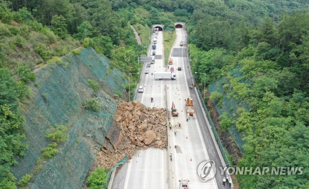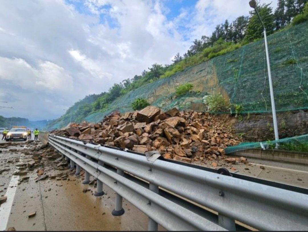 밤새 장맛비가 내린 2023년 7월 5일 오전 7시 반경, 상주-영천 고속도로 하행선 군위 불로터널 출구 인근에서 수백 톤의 암편이 쏟아져 내렸다.