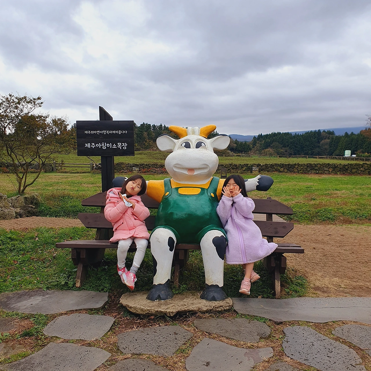 아침미소목장엔 소 먹이 주고, 놀이터에서 놀고, 거기 카페에서 먹으려고 가는 곳임. 어른들은 거기 초원에서 인생샷도 찍고 하지만은, 미취학 어린이 둘은 사진 따위 노관심.