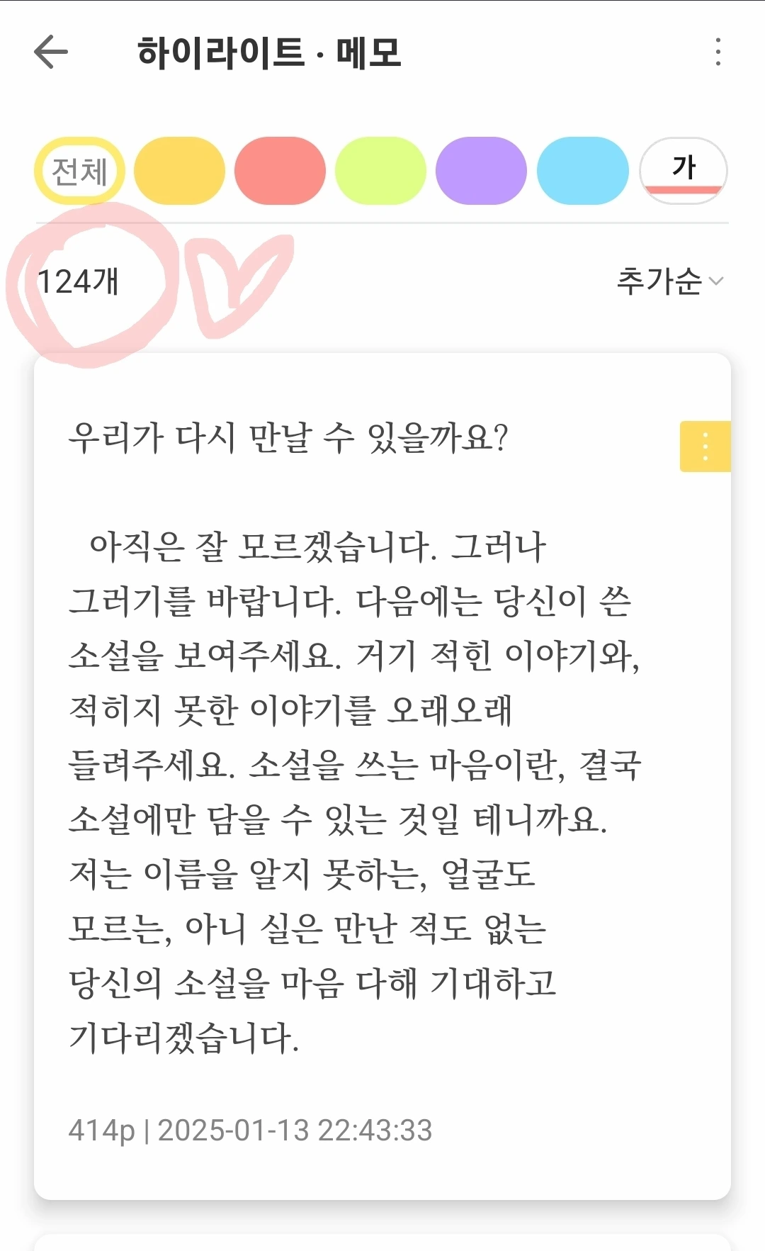 이 124개의 하이라이트를 정리한 후엔 책 리뷰를 제대로 써 놓고, 종이책을 주문해야지.