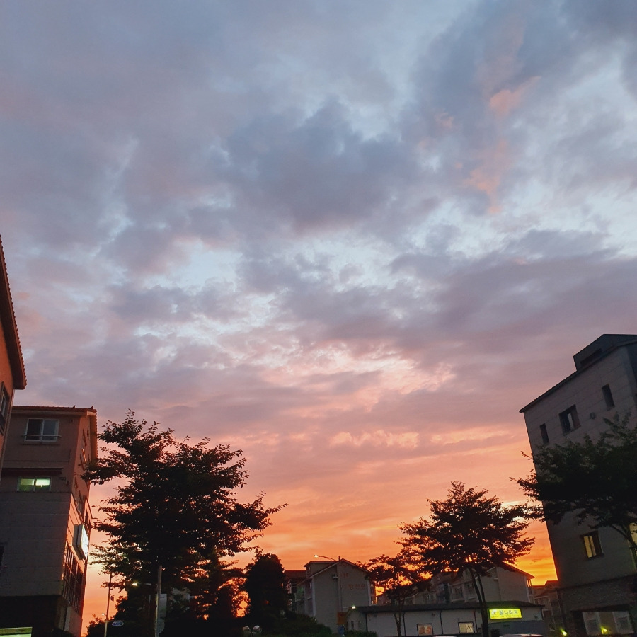 나가자마자 사진을 찍을 수 밖에 없던 하늘. 노을 색도, 구름도, 넓은 하늘도, 멀리 보이는 수평선과 바다도 환상적이다. 제주 살면서 내가 가장 좋아하는 건 이 넓은 하늘을 마음껏 볼 수 있다는 것이다.