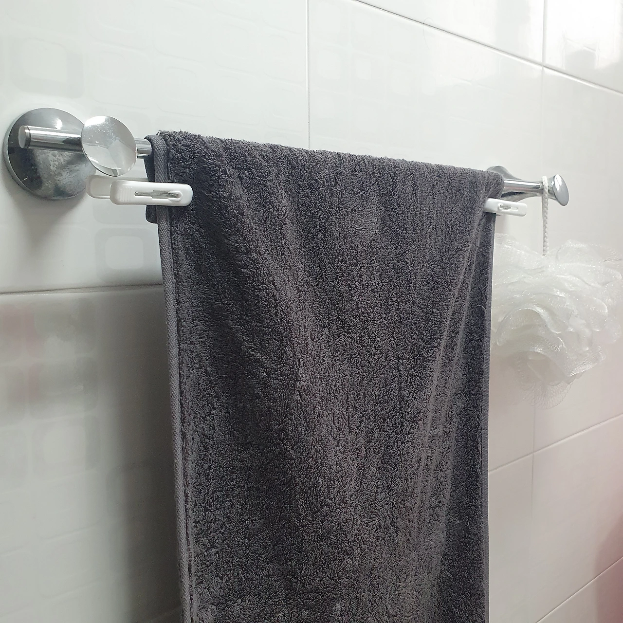 수건 끝을 빨래집게로 집어 놓으면, 키 작은 아이들이 수건을 잡아당겨 써도 수건이 떨어지지 않고 깨끗하게 쓸 수 있다.