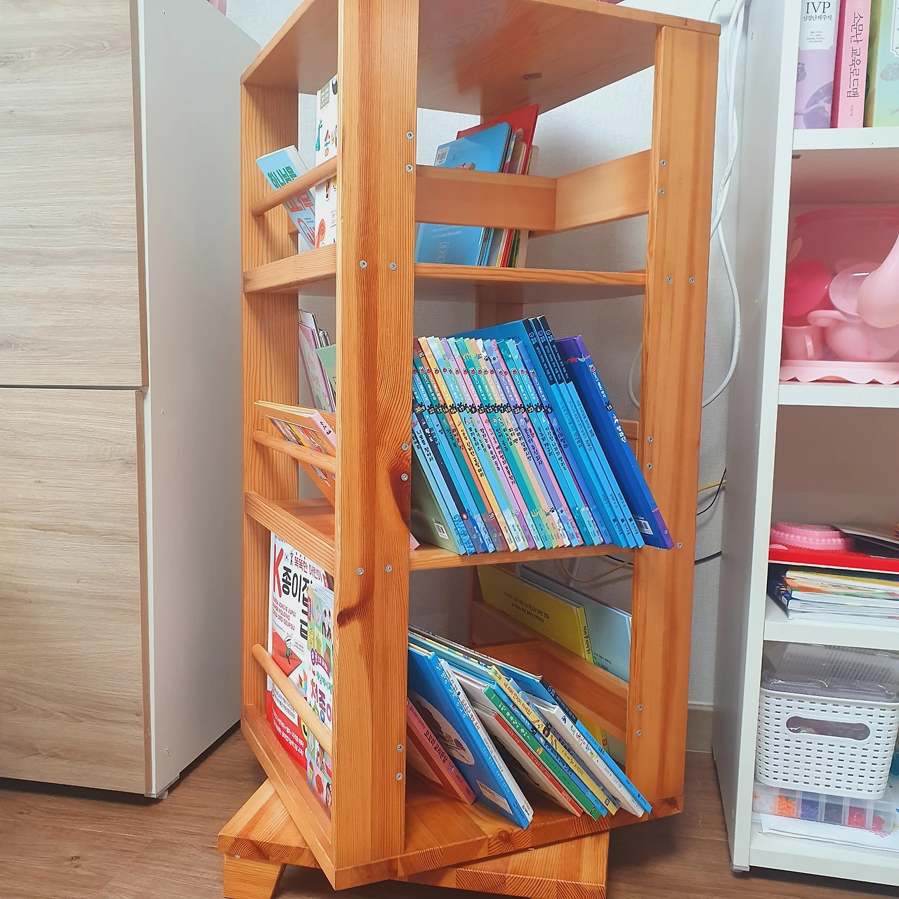 어마어마한 양의 책이 들어가면서 공간은 적게 차지하는 회전 책장. (당근에서 4만원에 겟!)